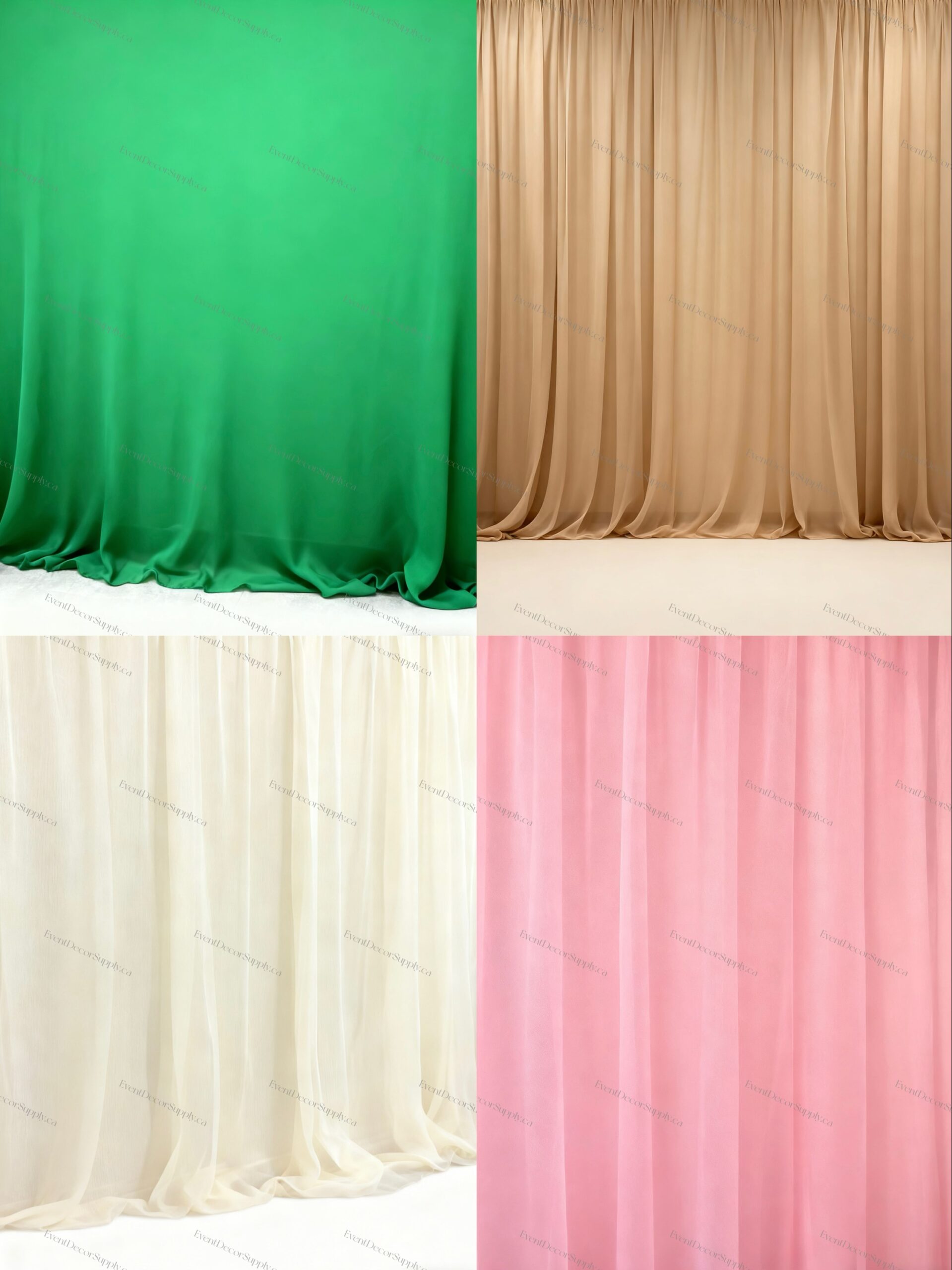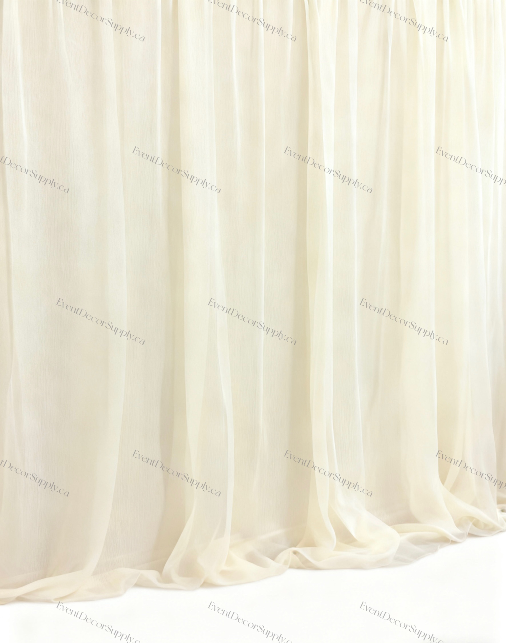 5 ft wide sheer fabric available in 4 colors, featuring good quality lightweight material ideal for draping, decoration, or crafts. It can be cut and sold per yard to suit your project needs.