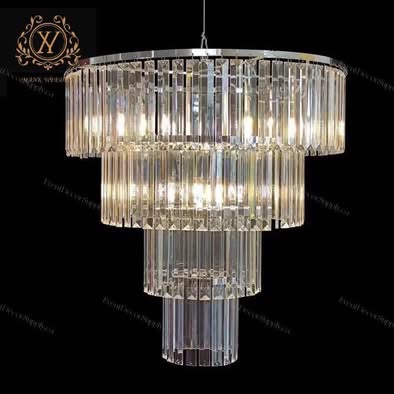 Gold or Silver 4 Tier Metal Acrylic Pendant Chandelier