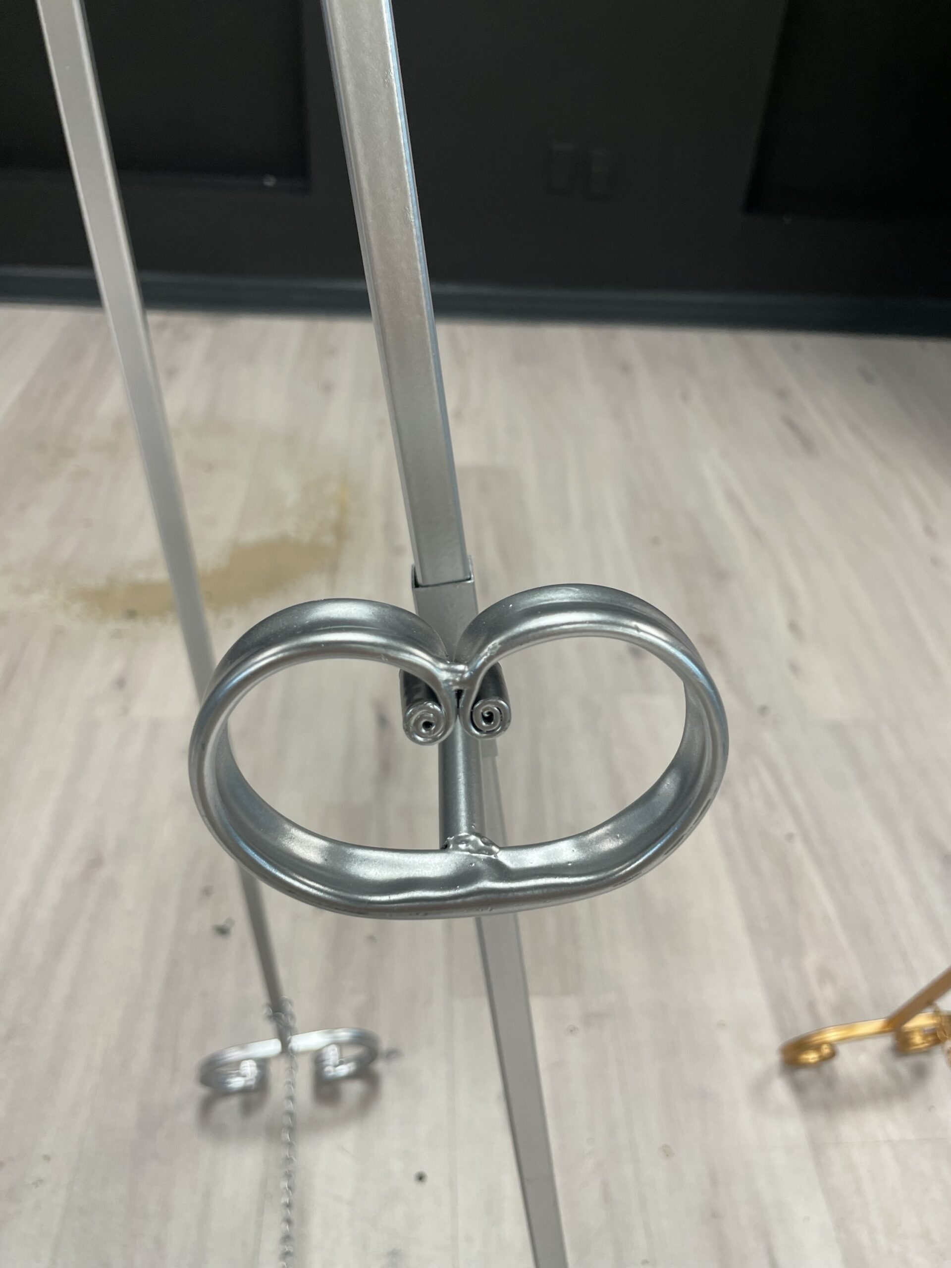 The heavy-duty decorative metal easel stand is a stylish and sturdy display solution for wedding signs, mirrors, or artwork. Crafted from durable metal, this easel offers stability and strength, making it ideal for both indoor and outdoor use. Its elegant design features a classic silhouette, adding a touch of sophistication to any event decor. With adjustable height options, it can accommodate various sizes of signage or mirrors, making it a versatile choice for weddings, special events, or home decor. This easel stand not only provides functionality but also enhances the overall aesthetic of your display.Fully unfolded with a height of 1.35 metres