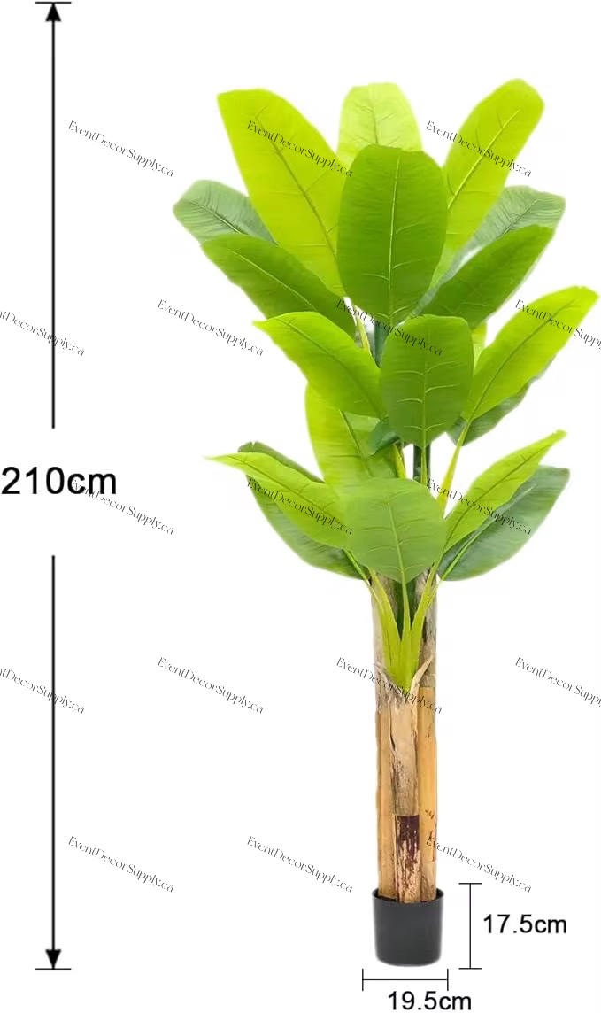 Bring vibrant tropical style to your space with this eye-catching artificial banana tree. Featuring three lush stalks and oversized green leaves, it offers a lifelike look without the maintenance. Ideal for home interiors, wedding venues, parties, and event styling, this faux plant adds a refreshing, greenery accent that stays beautiful year-round. No watering, no fuss—just lasting décor.