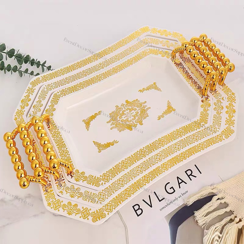 3-Piece Decor Trays: Blend luxury with utility. Perfect for home styling or wedding accents—hold small items while adding sophistication.