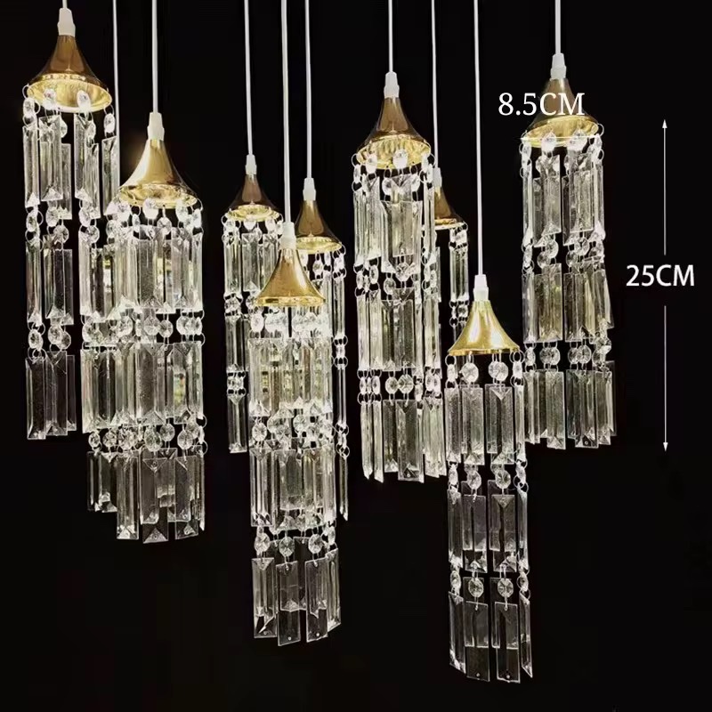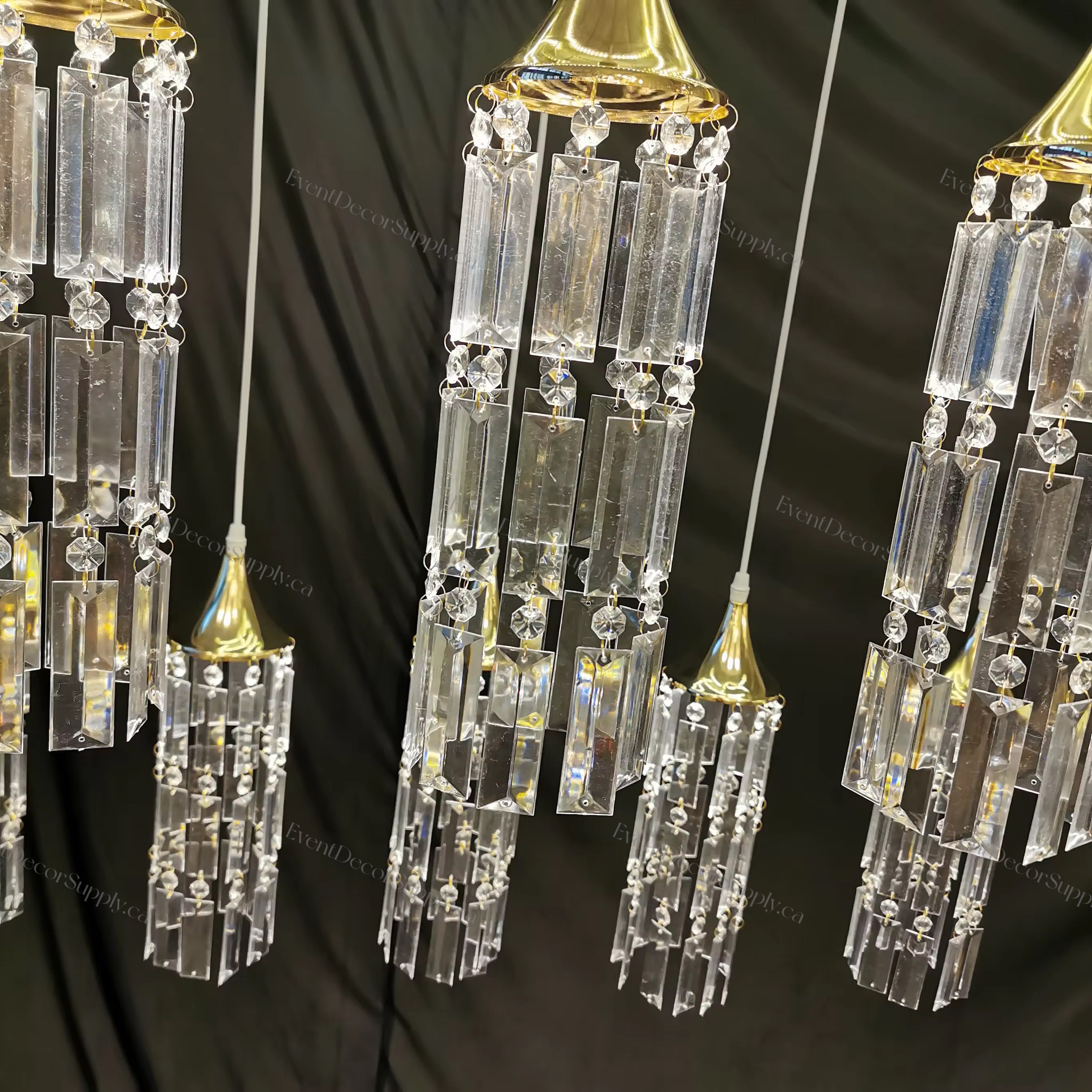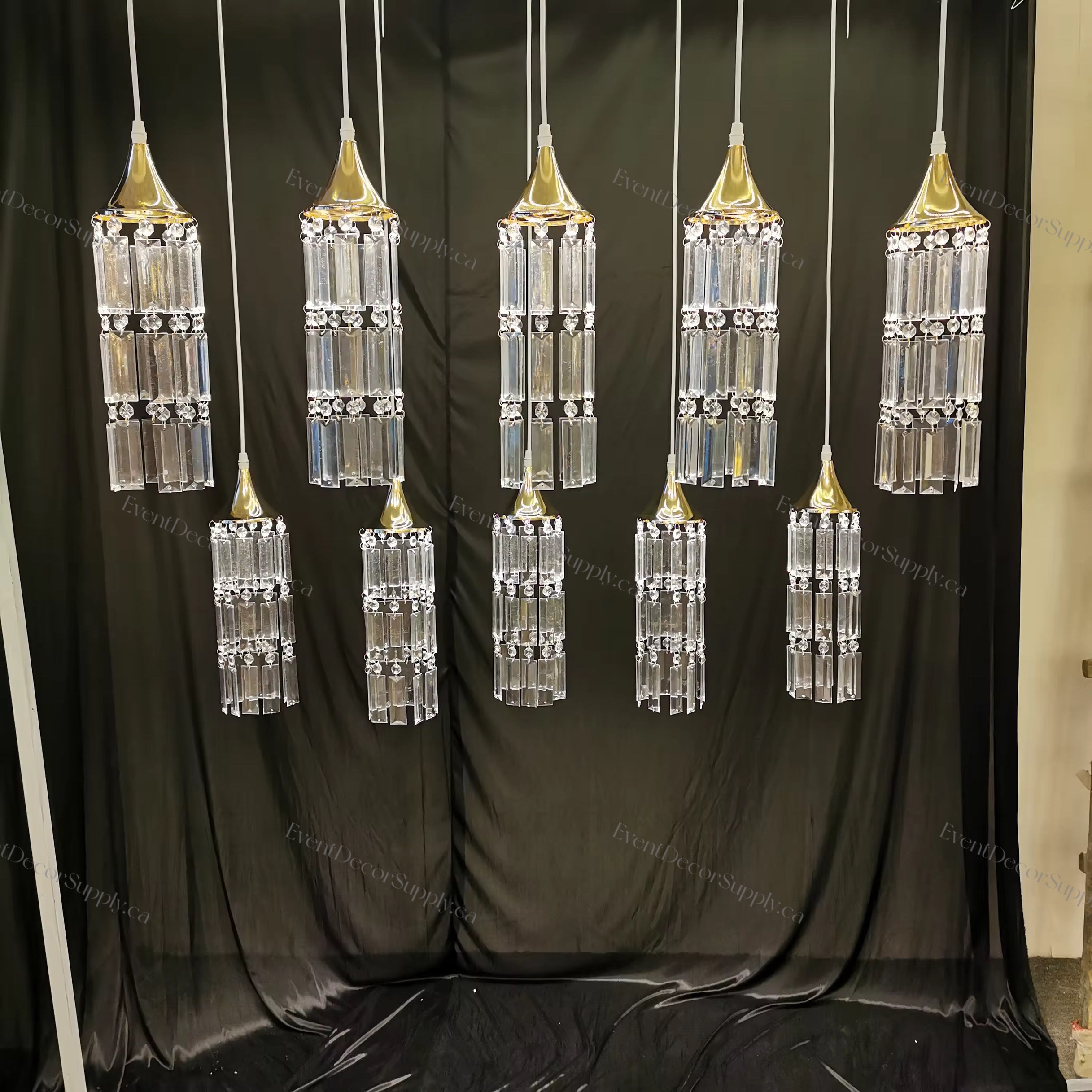 Wedding Chandelier 10 Heads Crystal Hanging Light is an elegant decorative lighting piece designed for weddings, hotel venues, and stage décor. It features 10 crystal hanging lights that create a luxurious and sparkling ambiance. Each crystal light measures 8.5 cm in diameter with a 25 cm long crystal section, beautifully reflecting light to enhance the overall atmosphere. Ideal for adding a romantic and sophisticated touch to special events and celebrations.